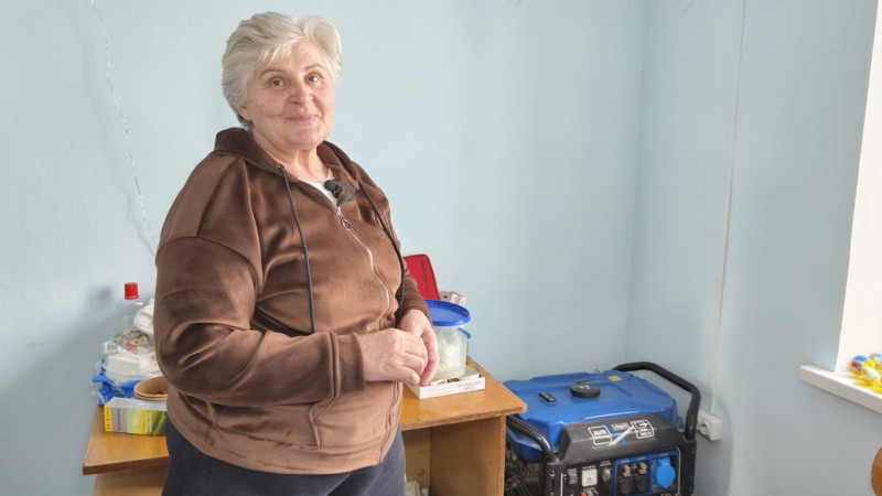 Староста сіл Партизанське і Благодатне Раїса Шульга показує генератор у пункті незламності. Суспільне Миколаїв/Федір Бондар