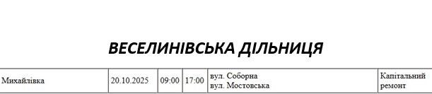 Графік відключення світла по адресах на 7 жовтня, Веселинівська дільниця АТ «Миколаївобленерго»