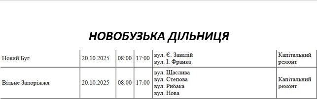 Графік відключення світла по адресах на 7 жовтня, Новобузька дільниця АТ «Миколаївобленерго»