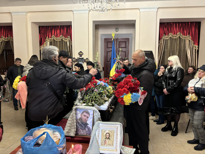 На центральній площі імені Тараса Шевченка у Первомайську провести в останню путь прийшли рідні, побратими та місцеві жителі.
