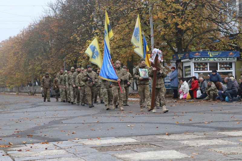 На центральній площі Первомайська, що на Миколаївщині, 24 жовтня відбулося прощання з воїном Богданом Кисілем. Чоловік вважався безвісти зниклим, 13 жовтня встановили факт його загибелі.