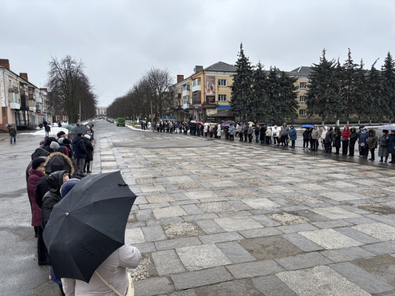 На центральній площі імені Тараса Шевченка у Первомайську провести в останню путь прийшли побратими, військовослужбовці, жителі та місцева влада.