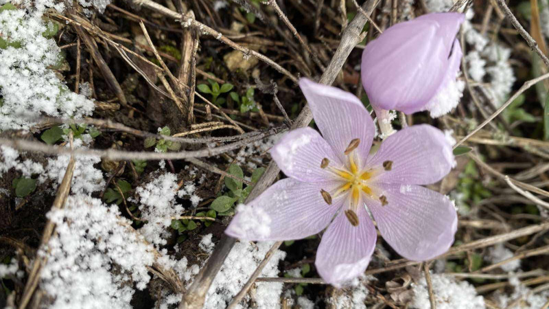 "Підсніжник Ельвеза квітне з лютого до березня. Шафран сітчастий — з березня до квітня, але останні 10 років на території заповідника цвіте з лютого. Пізньоцвіт анкарський квітне з січня по березень, при цьому одночасно з’являються і листки, і квіти", — говорить Мельничук.
