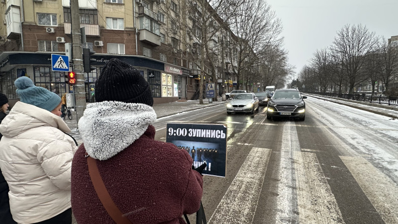 Акція "Зупинись. Вшануй" традиційно відбулася в Миколаєві 11 січня. Хвилиною мовчання вшанувати памʼять загиблих військових вийшли миколаївці з плакатами та прапорами.