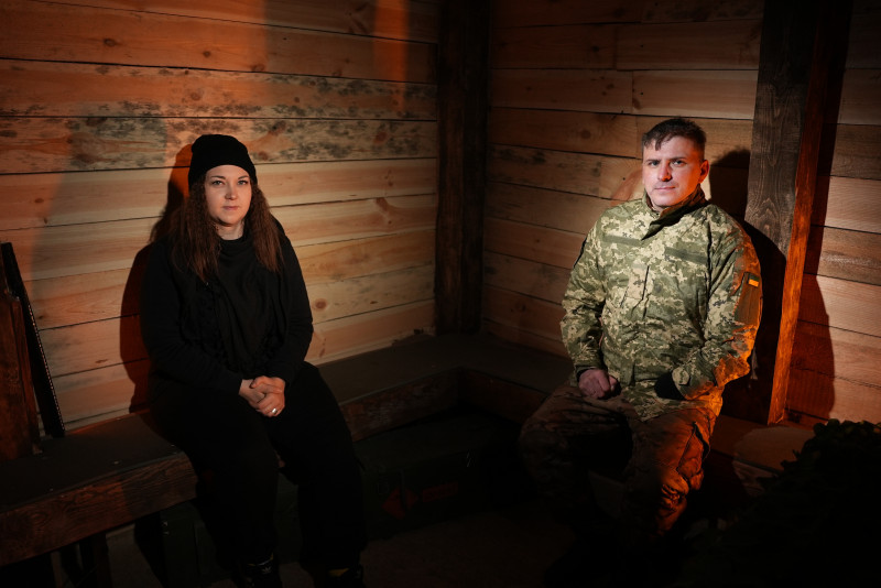 Командир взводу «Вампір-Перун» на псевдо Укроп поруч із журналісткою «Суспільне Миколаїв» Валентиною Гуровою. Суспільне Миколаїв/Юлія Філімон