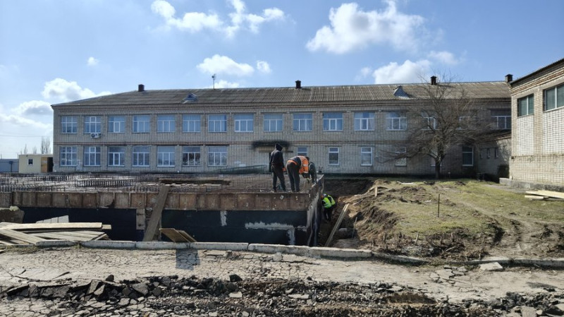 Бригада з шести ветеранів ЗСУ бере участь у будівництві протирадіаційного укриття на території ліцею в селищі Полігон на Миколаївщині. Усі військові — мають інвалідність.
