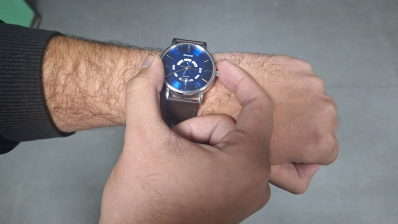 Чоловік налаштовує час на годиннику. Суспільне Миколаїв/Марія Соболь