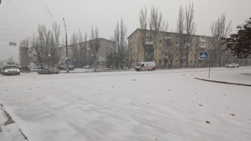У Миколаєві 26 грудня випав перший цього сезону сніг. Опади спостерігають в різних районах міста, вкривши вулиці та дахи тонким білим шаром.