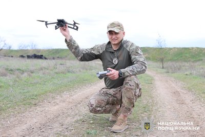 Микола Савсюк з дроном в руці. Національна поліція Миколаївської області