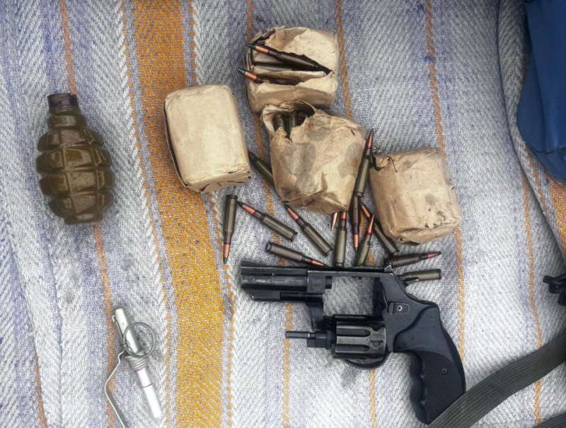 Під час обшуку легковика слідчі вилучили автомат, підствольний гранатомет із трьома пострілами, корпус гранати з підривачем, револьвер та 119 набоїв до автоматичної зброї. Чоловік пояснив, що озброєння назбирав на колишніх позиціях РФ.
