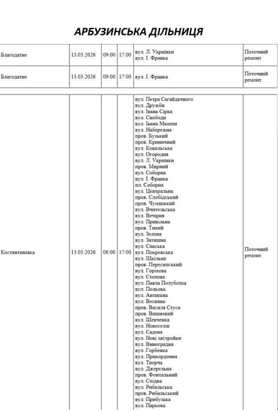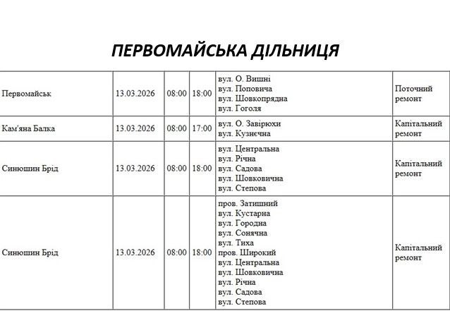 Попередньо, за підчергами світло вимикатимуть наступним чином: