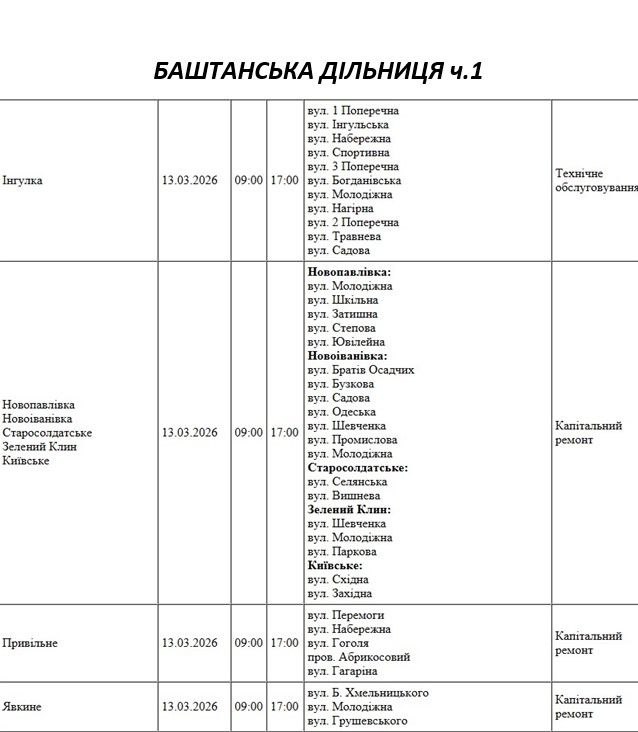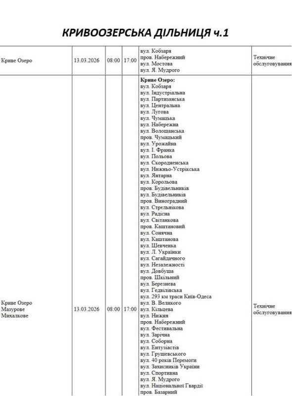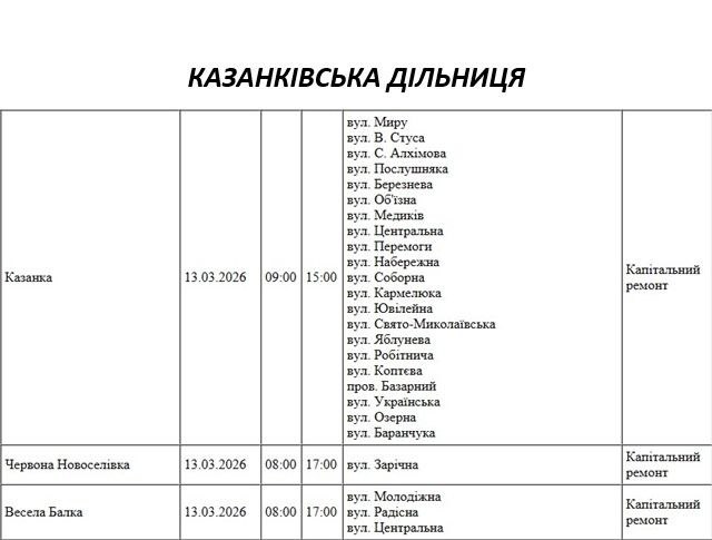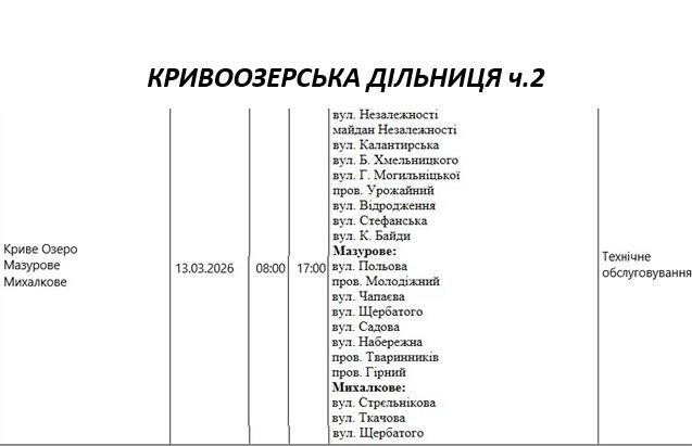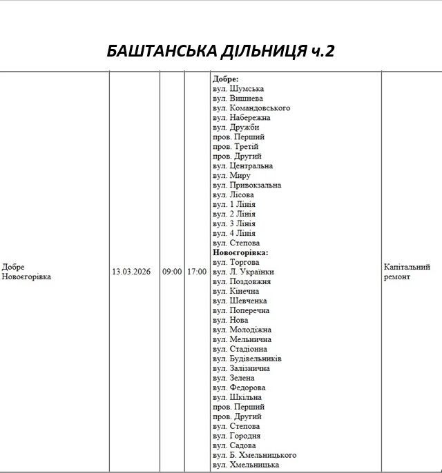 Крім того, деякі вулиці в регіоні залишаться без електропостачання через поточні ремонтні роботи, реконструкції та технічне обслуговування.