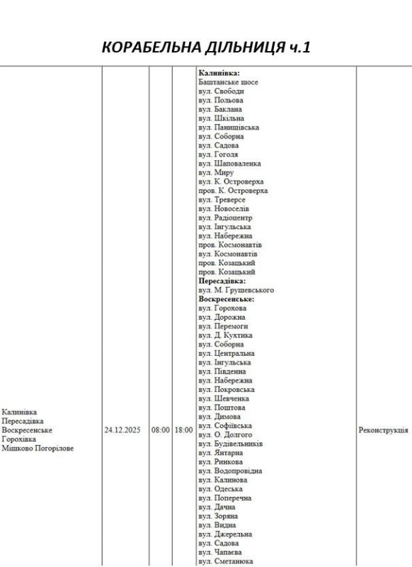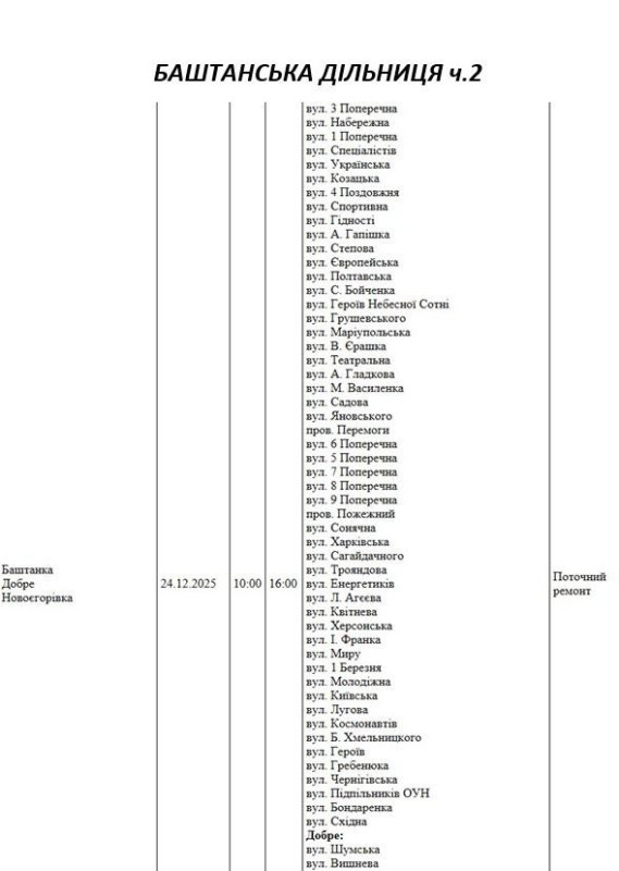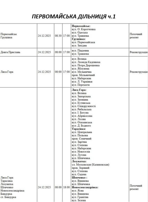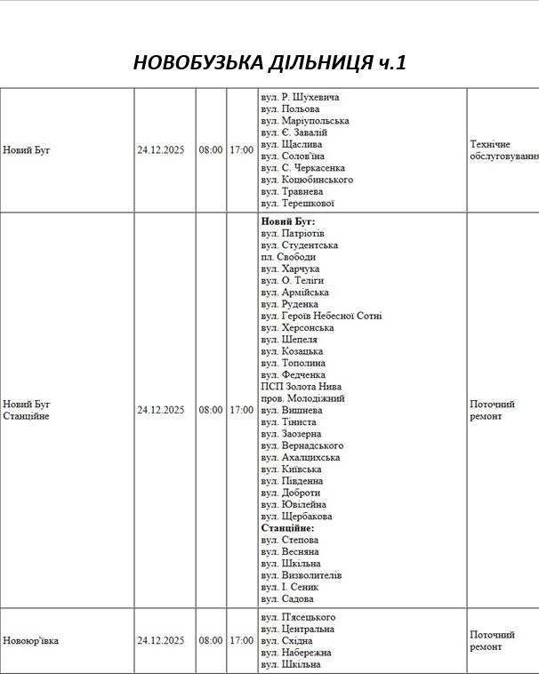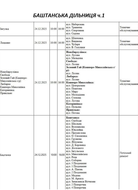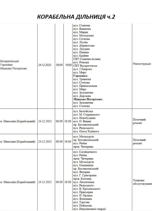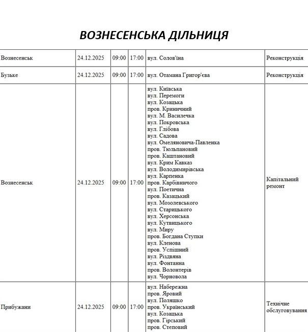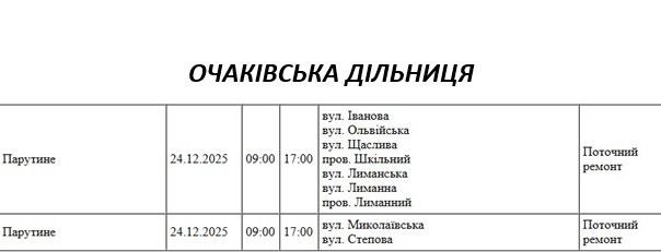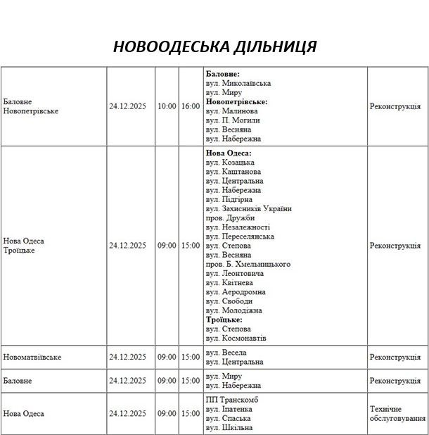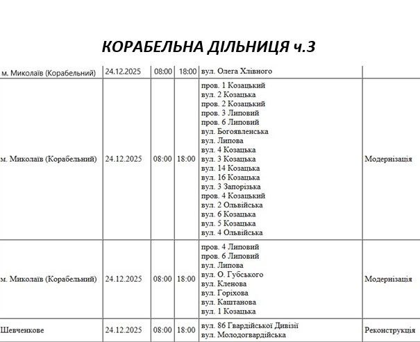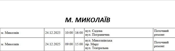 На Миколаївщині 24 грудня частина вулиць залишиться без електропостачання. Це пов'язано з ремонтами, технічним обслуговуванням, модернізаціями та реконструкціями.