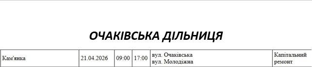 Графік відключення світла по адресах 21 квітня, Очаківська дільниця. АТ «Миколаївобленерго»