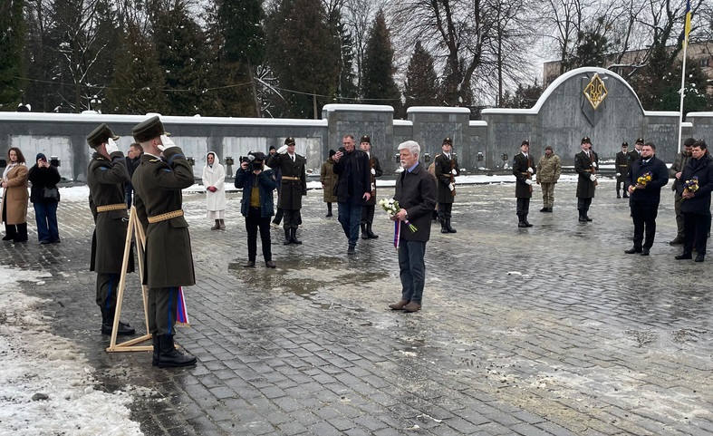 У супроводі мера Львова Андрія Садового та інших представників він також відвідав поминальну службу на Личаківському кладовищі, де вшанував пам'ять загиблих українських воїнів.