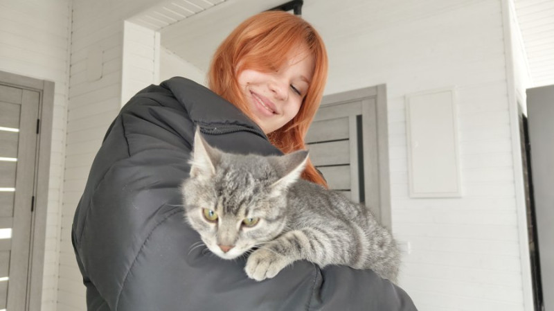 Переселенка Софія тримає у руках котика. Суспільне Миколаїв/Федір Бондар