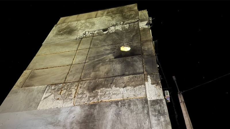 Діра у стіні багатоповерхівки внаслідок атаки РФ. Суспільне Миколаїв/Валентина Гурова