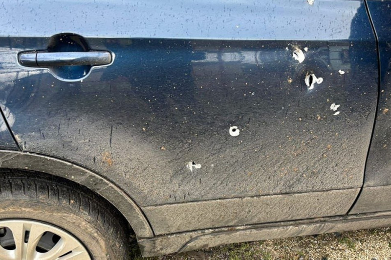 "Внаслідок влучання пошкоджено кузов транспортного засобу. Водій, на щастя, не постраждав".