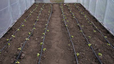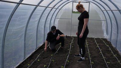 "Ми одразу висадили, кинули "каплю", бо стояла теплиця одна — у тій я висаджував, а в іншій ось тільки це перші огірки тут ростуть".