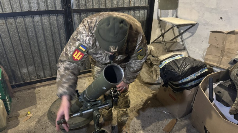 Військовий споряджає мінометну установку. Суспільне Миколаїв/Олександр Гордієнко