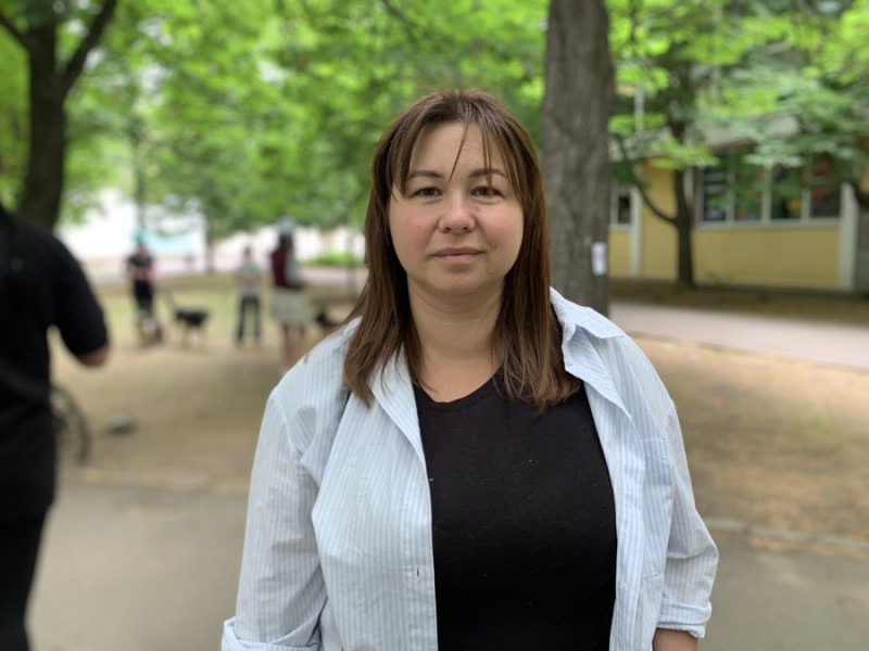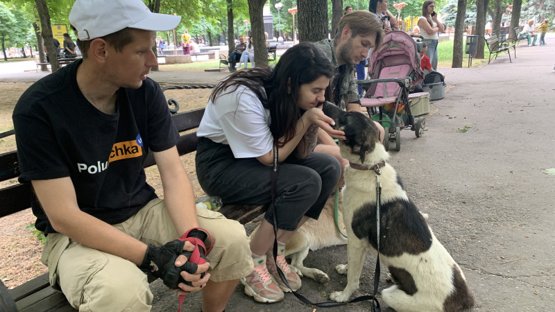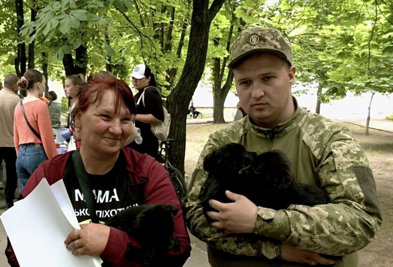 "Я їхала на мирну акцію з підтримки військовополонених, і нам сказали, що у парку нині виставка-прилаштування тварин. Ну, і вирішила сюди прийти. Я взяла три дівчинки: одну доньці, одну собі та одну сестрі, і донька захотіла собі песика ще", — говорить Олена.