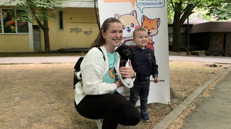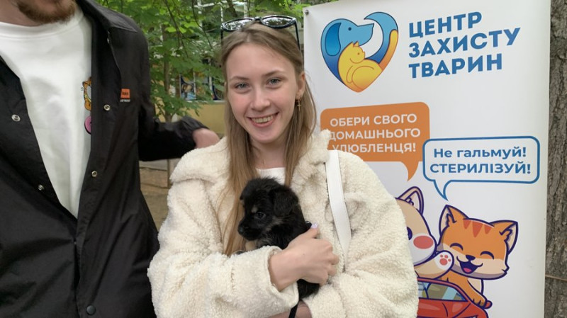 "У мене є собака та кішка, але вони живуть з батьками. Також є в дідуся собака. Ми побачили, що організовується виставка, і вирішили прийти просто подивитися. Дуже давно хотіли завести собачку, чи взяти з притулку, і прийшли сюди, побачили й вирішили взяти", — розповідає жінка.