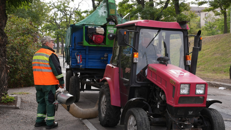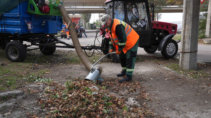 "Найбільше зараз падає листя платанів, каштанів. Потім тополь, акація і так далі. Здійснюємо комплекс робіт з вигрібання опалого листя та формуванню купок. Після чого приїжджає спецтехніка: порохотяг або екскаватор, та завантажують опале листя на великогабаритну техніку, вивозимо на полігон", — пояснила жінка.