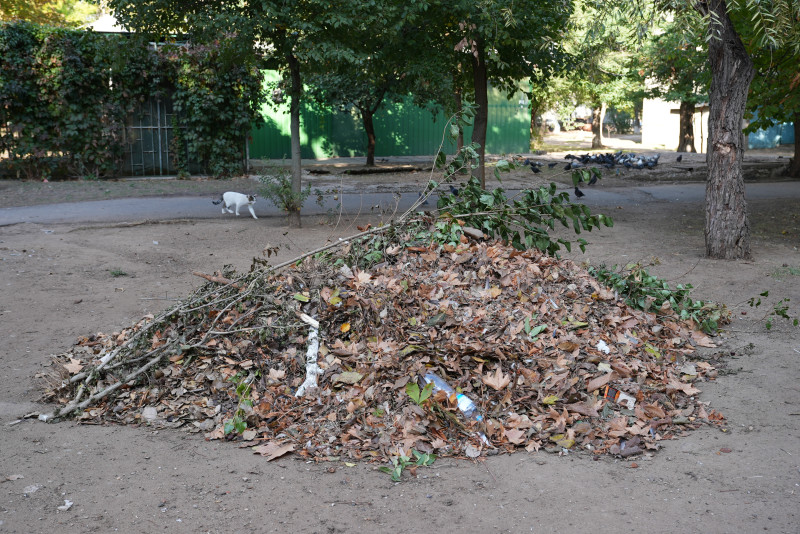 "Більшість, як і інші будинки, що в управлінні керуючих компаній, просто виносять листя. Адміністрації районів виділяють окремі ділянки й листя туди виносять, їх вивозять на звалище. Більшість працюють тільки у такому режимі", — каже чоловік.