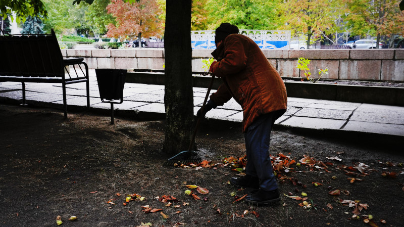 Двірниця прибирає опале листя Юлія Голокоз/Суспільне Миколаїв