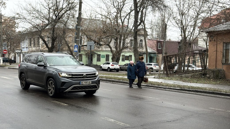 Через слизькі тротуари пішоходи змушені йти дорогою серед машин. Суспільне Миколаїв/Юлія Голокоз