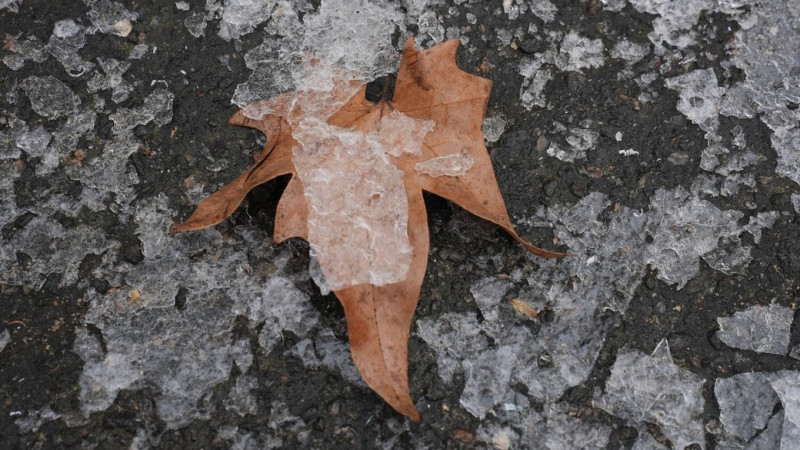 Лід вкрив дорогу, а на ньому лежить листочок. Суспільне Миколаїв/Роман Волинський