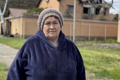 "Перелякалась страшне. Я коли вийшла з воріт, бачу — дим йде. Я думала, він тут упав, а він, виходить, туди бахнув. В мене там трошки геть побило (ред.— будинок). Ви знаєте, в мене досі руки трусяться: я стою, і оце все скло падає, і все гудить".