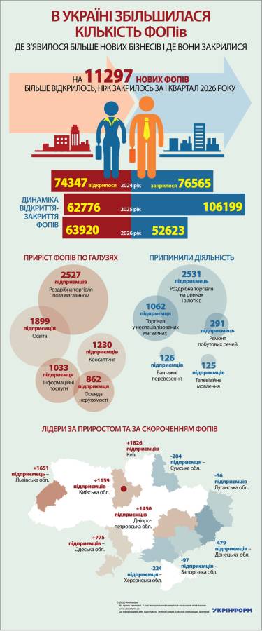 Де з’явилося більше нових бізнесів і де вони закрилися