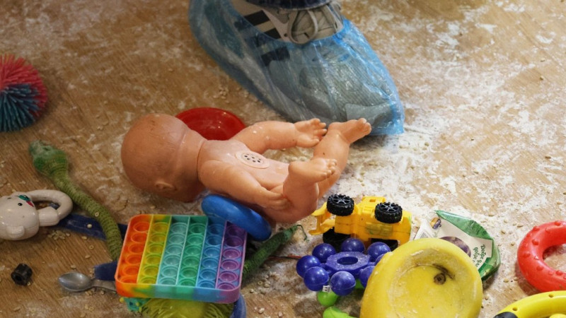 Іграшки загиблих дітей на місці інциденту. Головне управління Національної поліції в Миколаївській області