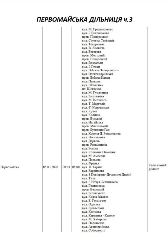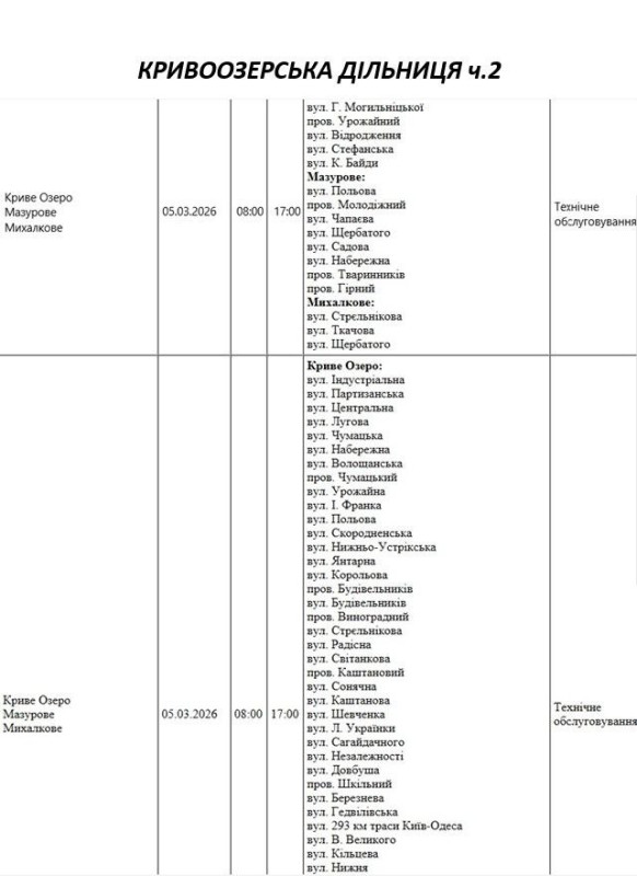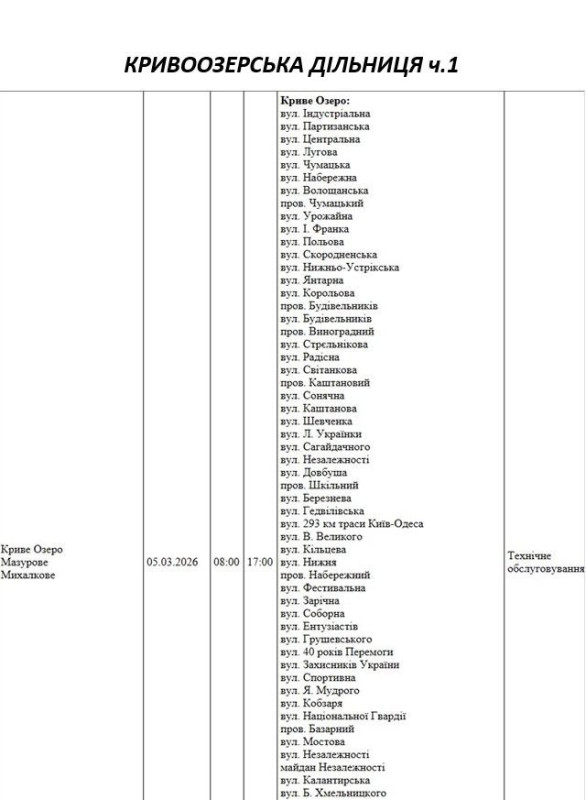 На Миколаївщині 5 березня деякі вулиці залишаться без електропостачання. Це пов'язано із поточними ремонтними роботами, реконструкціями та технічним обслуговуванням.