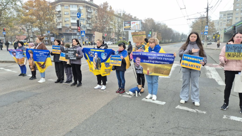 На розі проспекту Центрального та Соборної 16 листопада до загальнонаціональної хвилини мовчання долучились близько 30 людей. Учасники вийшли з плакатами та прапорами, аби вшанувати пам’ять загиблих.