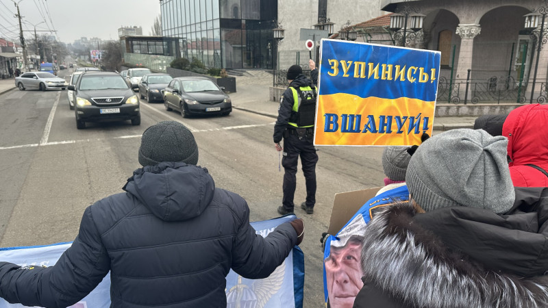 Учасники акції з плакатами та прапорами вийшли на дорогу, закликаючи транспортний потік зупинитися о 09:00.
