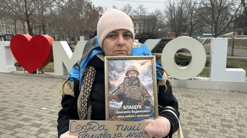 Переселенка з Херсонщини Галина щонеділі ходить на акцію. Каже, серед її знайомих є полеглі військові, а її чоловік нині безвісти зниклий.