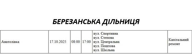 Графік відключення світла по адресах 17 жовтня, Березанська дільниця. АТ «Миколаївобленерго»