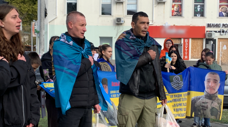 У Миколаєві 12 жовтня відбулась акція-нагадування про полонених та зниклих безвісти військових. Рідні, друзі та містяни вийшли з прапорами та плакатами у центрі міста. Під час акції люди привітали двох звільнених з полону військовослужбовців.
