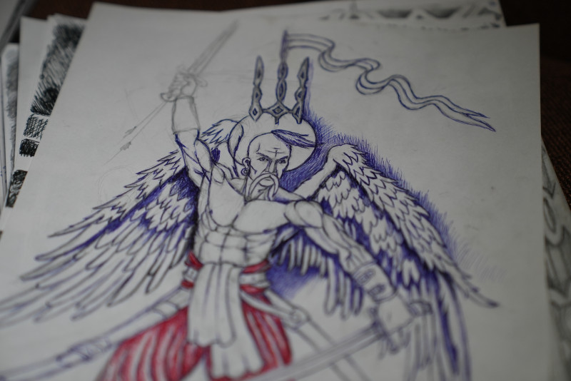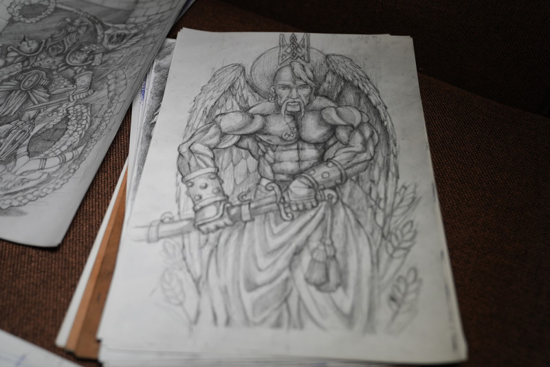 "У всіх моїх малюнках іде ця боротьба, здебільшого боротьба зі злом, з несправедливістю загостреною, і добрими кінцевими (результатами — ред.) за віру, за хрести, за справедливість", — каже автор.