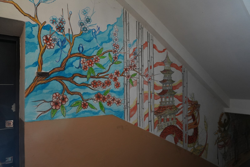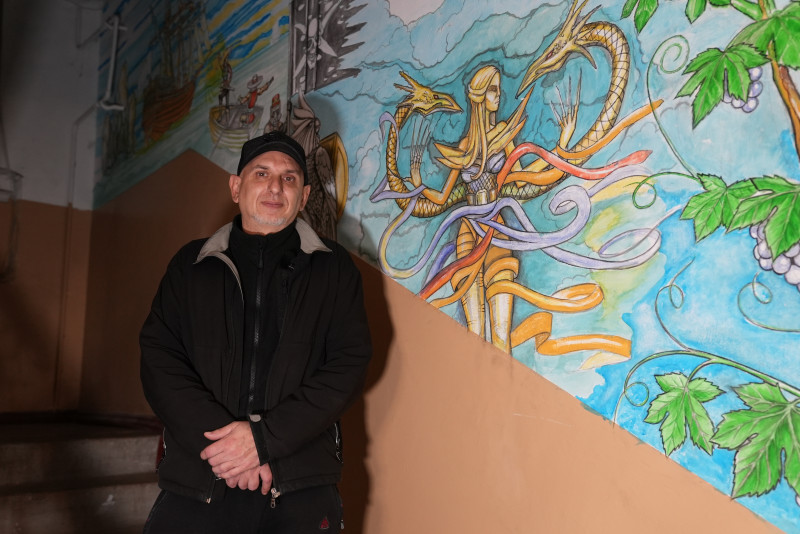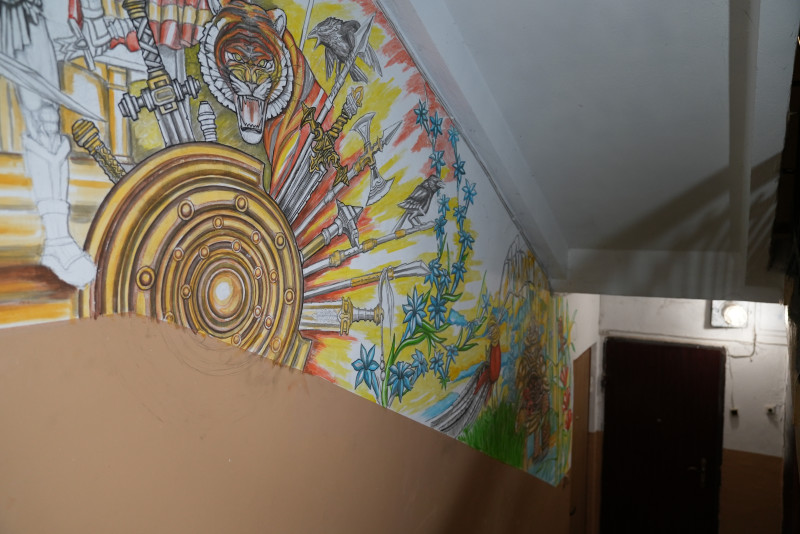 Стіни під’їзду з першого до четвертого поверху Михайло розмалював за три місяці. Біля власної квартири зробив малюнок в пам’ять про друга дитинства.