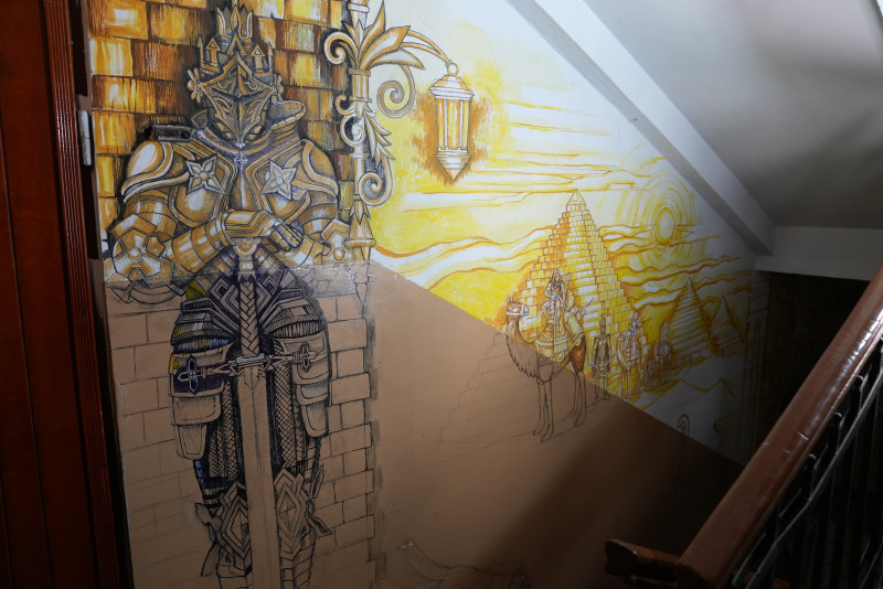 Протягом трьох місяців миколаївець Михайло Дем'яненко розмалюав стіни під’їзду, у якому живе. Кожен поверх оформлює у стилі різних країн, додає містичних та фентезійних мотивів, фрагменти історії. Усі малюнки наносить у техніці аерографіїТехніка нанесення малюнка на поверхню за допомогою аерографа, який розпилює фарбу під тиском повітря.