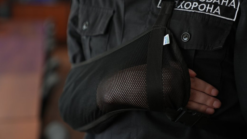 Рука зафіксована у спеціальному медичному фіксаторі‑підвісі. Суспільне Миколаїв/Маріетта Мкртчян