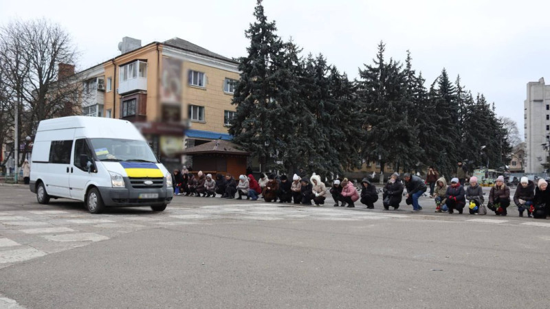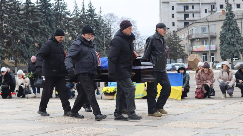 На центральній площі імені Тараса Шевченка у Первомайську люди утворили "живий коридор" пам’яті, ставали на коліна та схиляли голови, вшановуючи полеглого захисника.