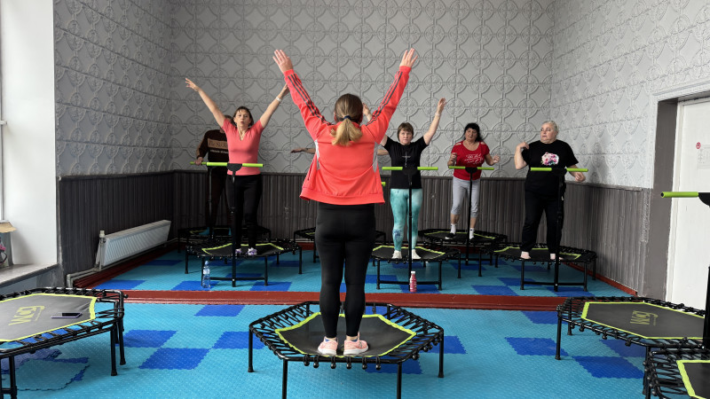 Жителька Рита відвідує заняття з джампінгу у місцевому будинку культури. Каже, з 2022 року не виїжджала з селища. Жінка вважає, відкриття фітнес-клубу — це можливість розслабитися.