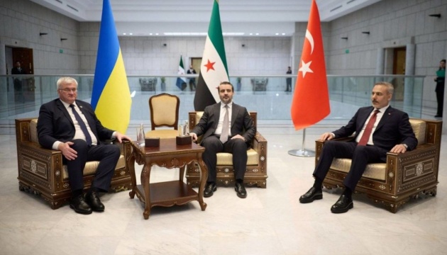 Своєю чергою глава МЗС України Андрій Сибіга поінформував: «У Дамаску, разом із моїми колегами — Асаадом Хасаном аш-Шейбані та Хаканом Фіданом — ми провели зустріч у новому тристоронньому форматі Україна — Сирія — Туреччина».