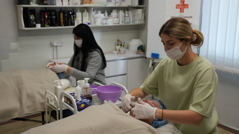 Ольга — переселенка з Херсона та дружина військовослужбовця. Жінка каже, у соцмережах натрапила на оголошення про безкоштовне профільне навчання для людей пільгових категорій від Червоного Хреста, вирішила спробувати себе у косметології.