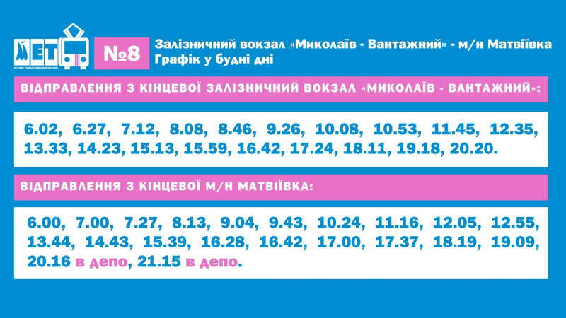 Графік руху тролейбусного маршруту № 8 КП ММР «Миколаївелектротранс»