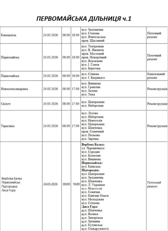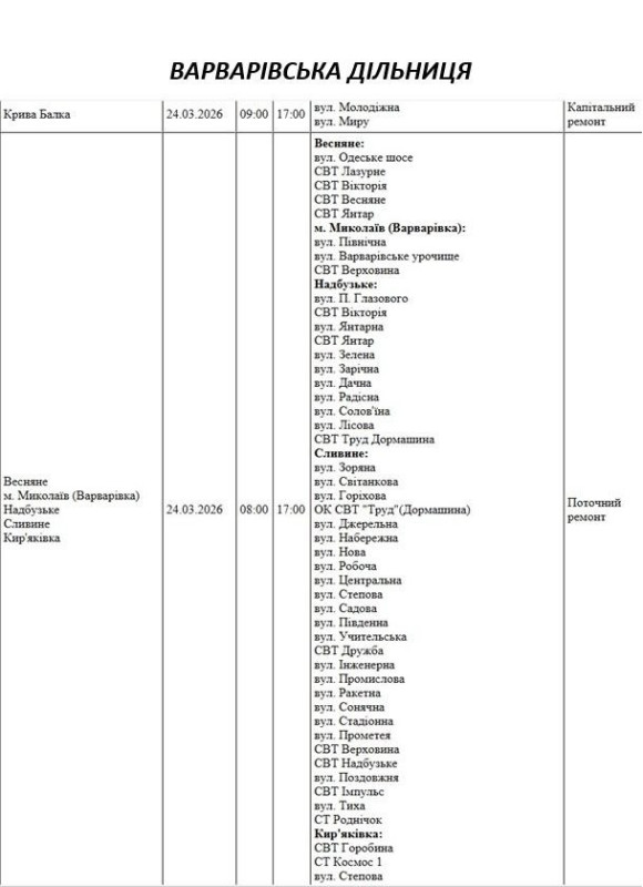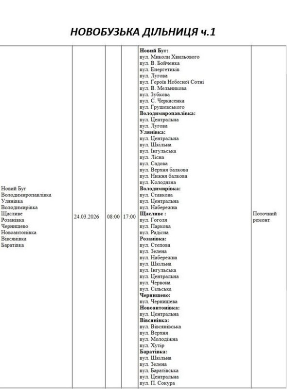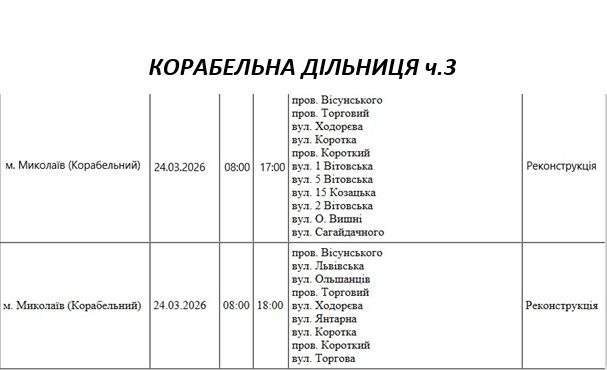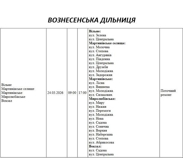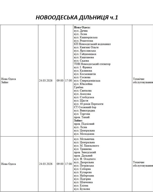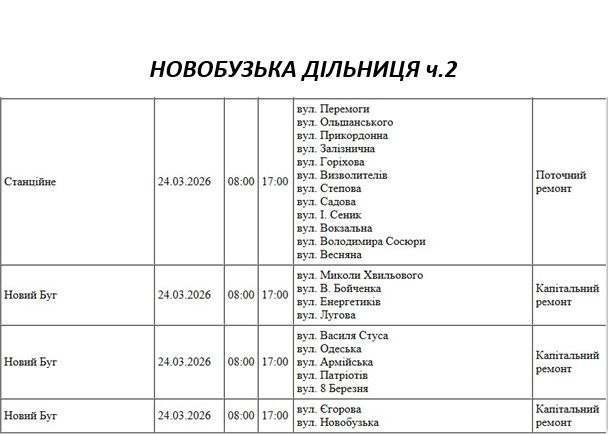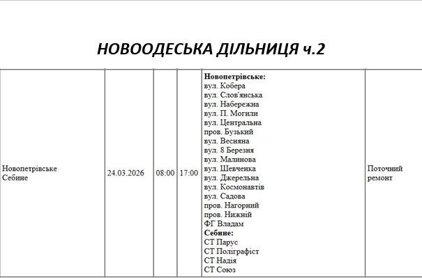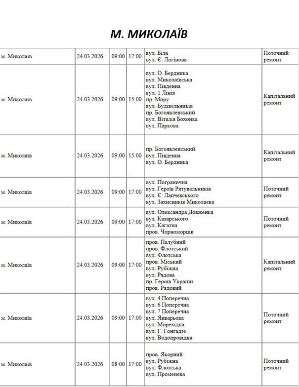 На Миколаївщині 24 березня деякі вулиці залишаться без електропостачання. Це пов'язано із поточними ремонтними роботами, реконструкціями та технічним обслуговуванням.